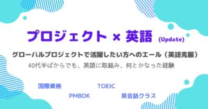 グローバルプロジェクトで活躍したい方へのエール(英語克服) 〜 40代半ばからでも、英語に取り組み、何とかなった経験 近年、日本企業は海外進出を実施し、日本だけでプロジェクトを実行することは少なくなってきております。プロ … 続きを読む プロジェクト ✖️ 英語