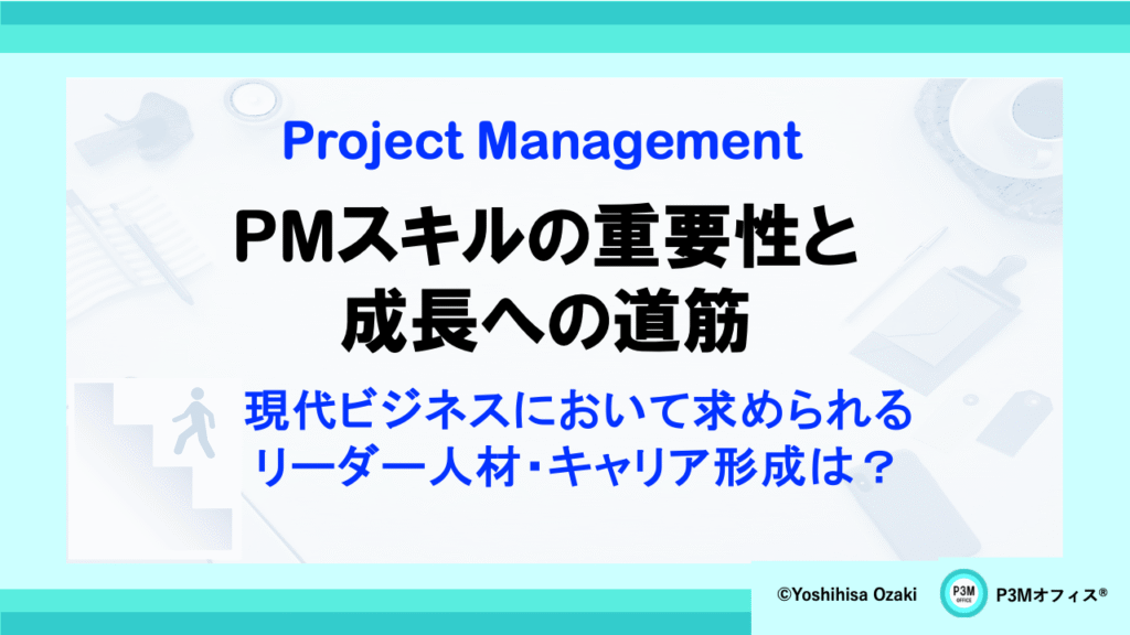 これらのプロジェクトを成功に導くスキル(PMスキル)は、組織内外で高く評価される内容で、まさに現代ビジネスのリーダーに相応しいものであることは言うまでもありません。